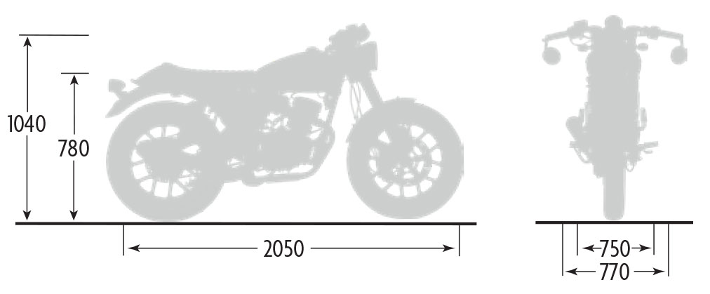 - Hauteur de selle 800 mm, compatible avec la majorité des gabarits.